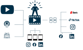 We turn raw footage into professional videos, audio podcasts, email newsletters & social content…all working together as one machine.